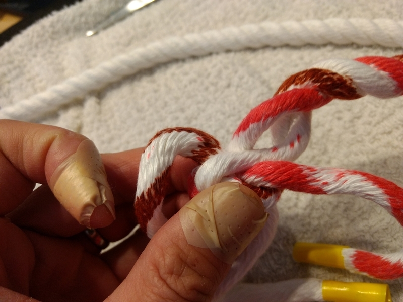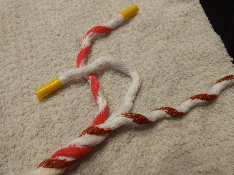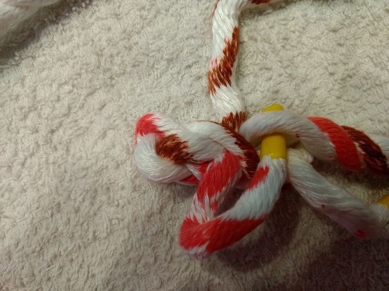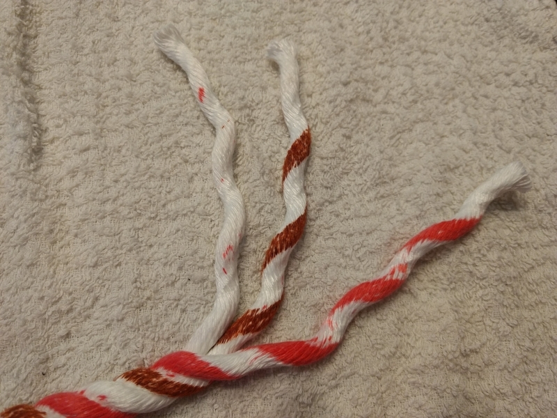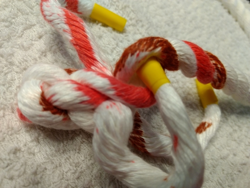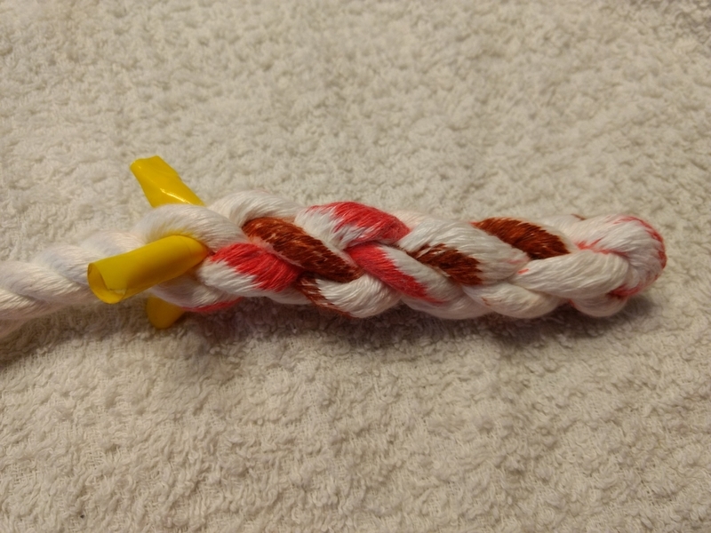 分かりやすいように、3つ打ちロープを着色したものを使用しました。