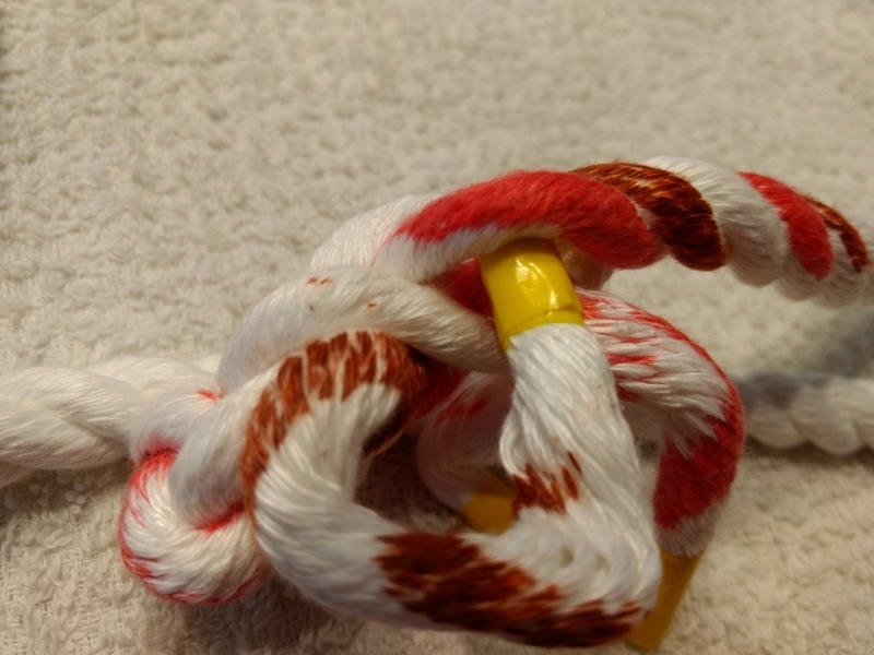 同様に、茶色のロープが白を飛び越えて赤の下をくぐります。