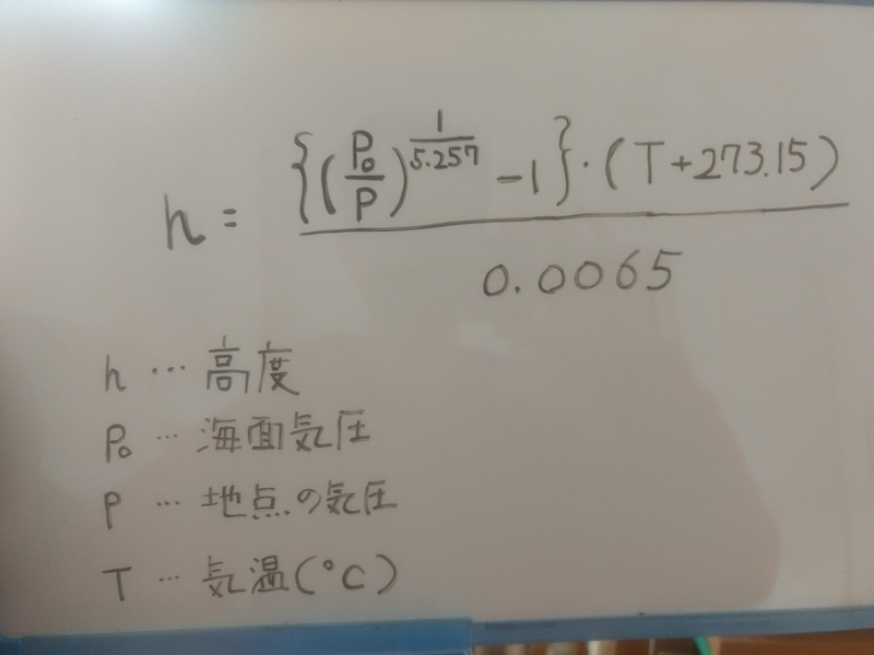まず、気圧、高度測定について。筆者は登山経験がほとんどありませんので、本機の高度計測機能がどの程度実用性があるのかよくわかりません。気圧計測については、上記の写真のとおり、1026hPaを指しています。当日の気圧配置を見てみると、日本海側に1028hPaの高気圧があり、当地区には1010hPaの等圧線がかかっていました。天気図と、本機の計測値には差異があります。これが、誤差の範囲なのかはよくわかりません。それを調べるためには他の気圧計の計測値と見比べてみる必要がありそうです。地方気象台の気圧は1025hPaを観測していました。本機の計測値とほぼ一致しています。高度は、地点の気圧と気温から、次式によって算出できます。海面気圧は1.013×10^5Paほどです。計算結果はー100mとなりました。海中やん。